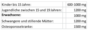Beispiel eines Tagesbedarfs: (circa 100 mg Kalzium)